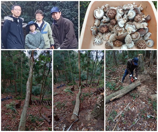かかり木の処理。ほだ木づくり。薪づくり。玉切り。